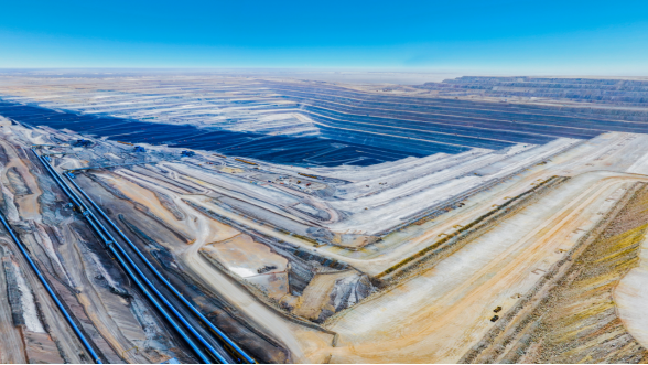 新疆准东经济技术开发区天池能源有限责任公司南露天煤矿是中国最大的单体露天煤矿,2024年入选全国首批智能化示范煤矿。图为4000万吨/年南露天煤矿一角