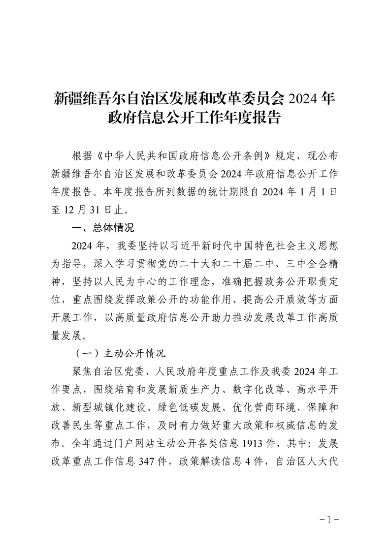 新疆维吾尔自治区发展和改革委员会2024年政府信息公开工作年度报告