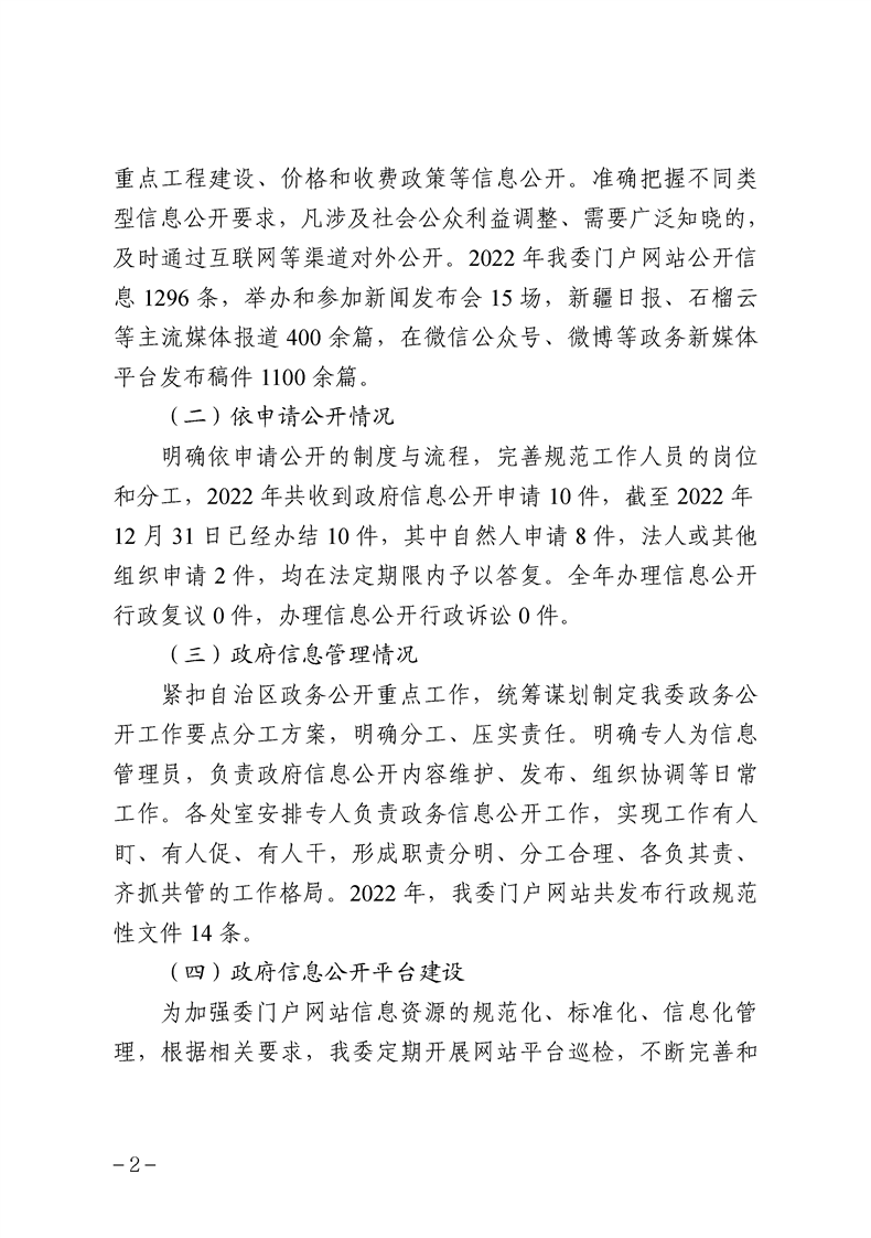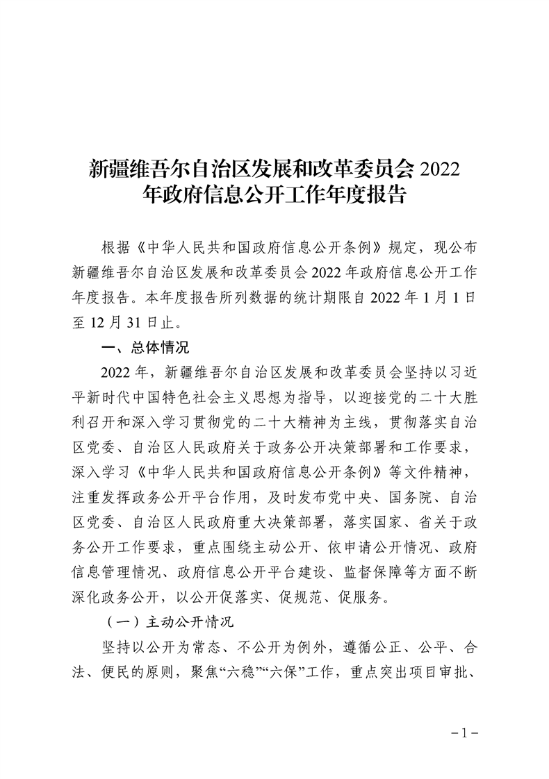 新疆维吾尔自治区发展和改革委员会2022年政府信息公开工作年度报告