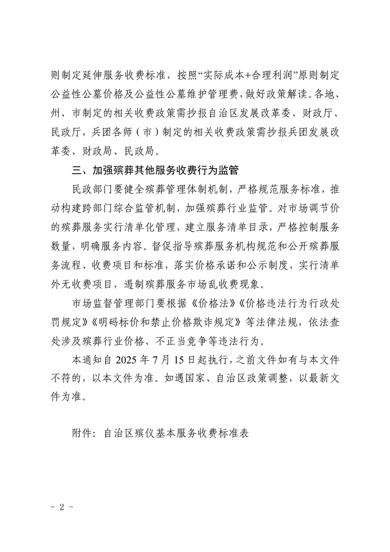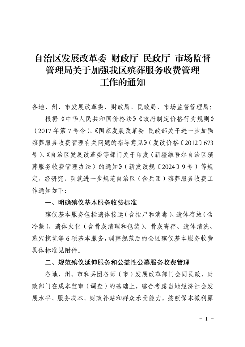 自治区发展改革委 财政厅 民政厅 市场监督管理局关于加强我区殡葬服务收费管理工作的通知》(新发改收费〔2025〕363号)