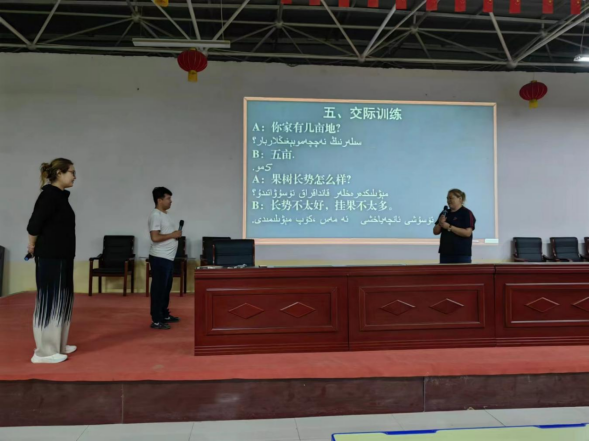 培训中,工作队队员加依娜·加尔肯结合自身少数民族学习普通话的经验和感受,重点围绕拼读基础、词汇认读、口语表达等内容,采用“情景模拟、实践锻炼与学练结合、小手拉大手”的教学方式,全面提升学员“听说读写”能力。向全村村民开展沉浸式教学培训,进一步增强培训的针对性和实效性,切实解决农牧民在学习国家通用语言文字中的难点、堵点问题,有效提升农牧民口语和文字书写能力。“在课堂上我学会了很多新词汇和新语句,每个都特别实用,我现在已经能够用普通话进行日常交流了。”村民帕提古丽说。