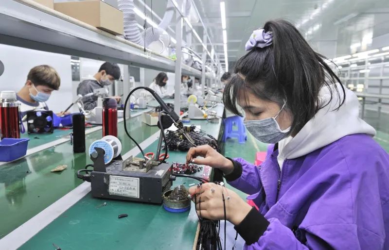 喀什经济开发区深圳产业园的一家电子元件厂生产车间工作内员工生产订单。石榴云/新疆日报记者约提克尔·尼加提摄