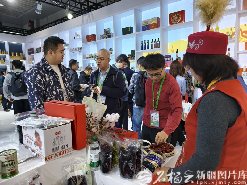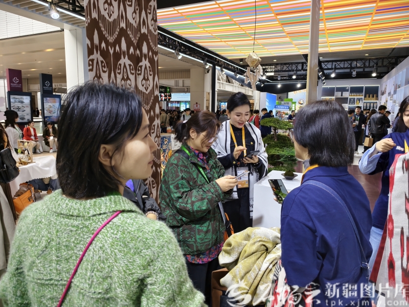 11月9日,第八届中国国际进口博览会新疆展台吸引不少客商前来。石榴云/新疆日报记者黑宏伟摄